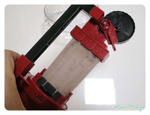レビュー中にも書きましたが、冷凍庫の設定を「強」や業務用冷凍庫で保管したあずきバーは、スティックが抜けにくかったり、削る際ハンドルが重い場合があるそうです。