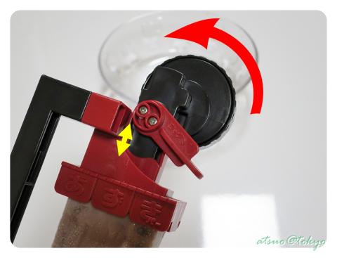 本体にあずきバーをセットした状態でぬけるんバーをスティックに取り付け、ダイヤルを回して抜き去ります。