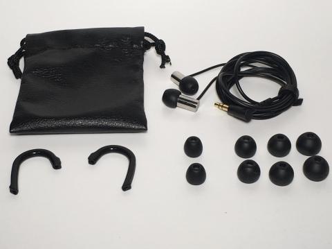 付属品は携帯ポーチと5種類のサイズが選べるイヤピース。それからイヤフック。