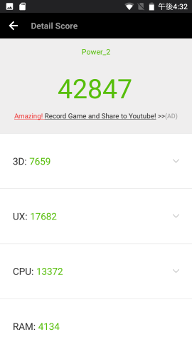AntutuBenchmark v6.2.7 スコア:42847 (平均:42000オーバー)