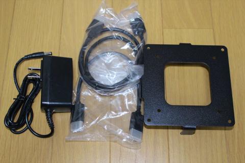 VESAマウントキット、VESAで使う場合に便利な短いHDMIケーブルと、1mのHDMIケーブルの2本が付属しています。