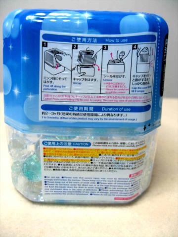 煙草臭対策で購入 我が家は煙草を吸う人は居ないのですがマンションは煙草の臭いが何処からとも無く入ってきます この消臭剤の香りは強くなく石鹸の香りで爽やか系です 3ヶ月くらい持つようで 中には1cm径位のジェル状球体が入っています