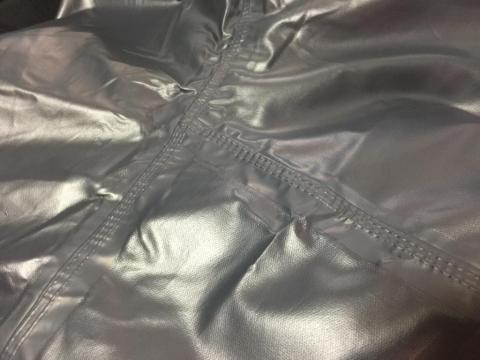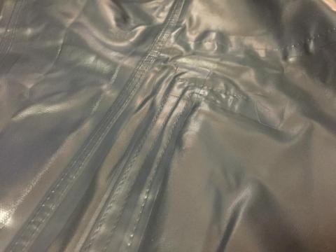 ・1点目は裏地を見るとレインウェアと分かりますので、襟元あたりは裏地を変えたら良い。