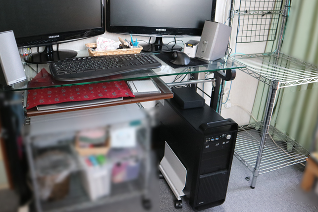 メインマシンの本体が右にあるので、新マシン(デスクトップ機)を置けない…