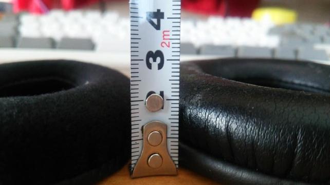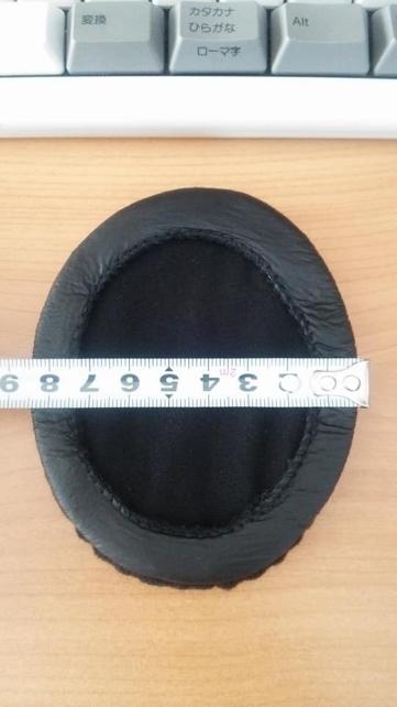 純正イヤパッドに今回の交換用イヤパッドを載せてみます。そうすると、このように横幅が10mm前後足りないのです。縦はちょっとだけ小さい気がしますが誤差の範囲かな。