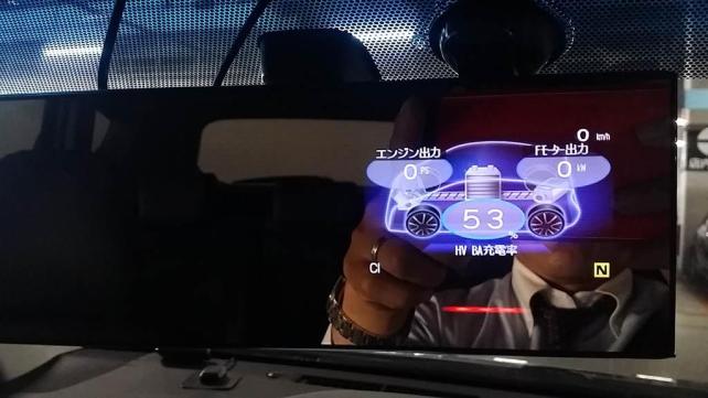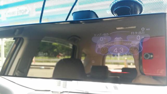 寄り目にするようなイメージで、奥のミラーを見るのではなく、手前の画像を見るようにして見ると、日中でも表示内容が良く見えるが、停車時であれば問題ないが、走行中にそんなに凝視する事はまず無理だろうw