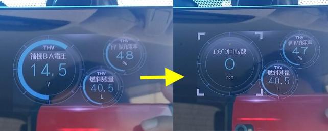 ※左側の補機バッテリーの電圧をタコメーターに変更
