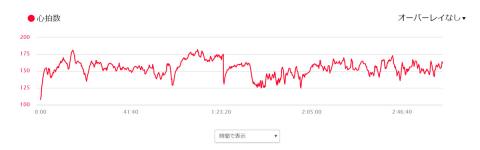 心拍計に取り付けるとこんな感じになります。これを胸に巻いて走るわけですが、すると心拍がリアルタイムに見れるようになるほか、下図のようなデータが取れるようになります。