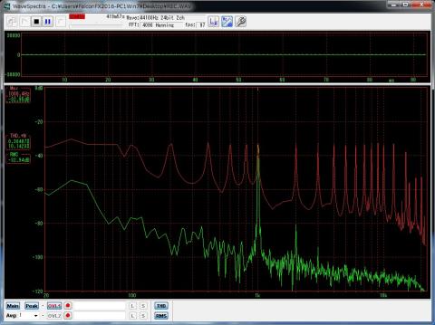 緑線は1KHz再生時の信号レベル 2 , 3次高調波がかなり低いです