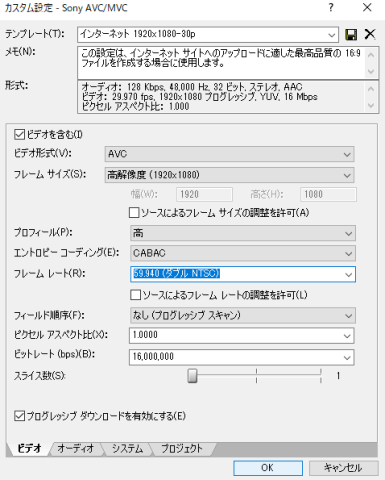 解像度は1920×1080 フレームレートは59.940(ダブルNTSC)