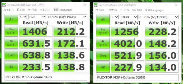しかし、どのストレージにも言えるが、苦手なランダム4KがPlextor M5P単体と比べても6.4倍も高速になっているのは驚異的だ。