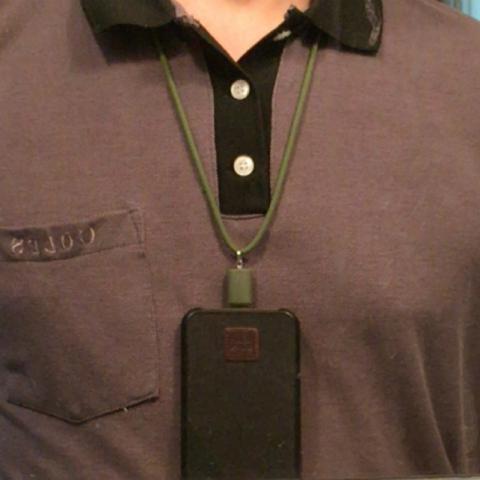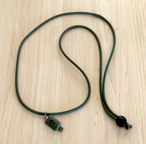 肌触りの良い素材の良い、首への衝撃を和らげるシリコン素材のネックストラップ。