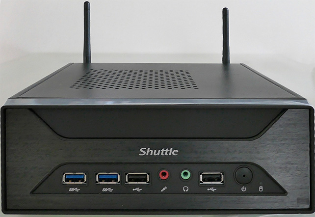 Shuttle XH110Gは、PCI Expressカードが1枚搭載できるようになっている関係で、アンテナ端子の位置が、左右で微妙に異なります。(右側の端子の方が若干高い位置にある)