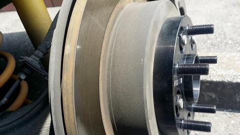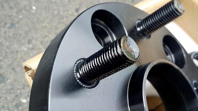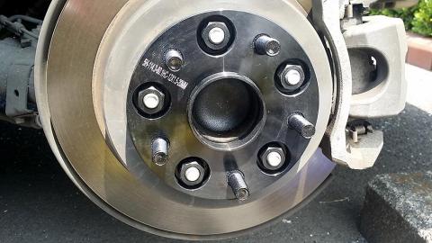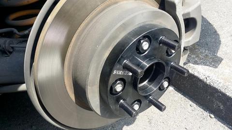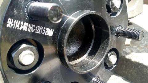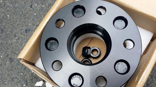取り付けは25mm厚のスペーサーならボルトが本体内に収まるようなので、ホイール側は余り気にしなくても良いようだが、25mm以下の厚みのスペーサーの場合は、ホイールの裏側に、ボルトの逃げがないと、装着ができないので確認をした方が良さそうだ。