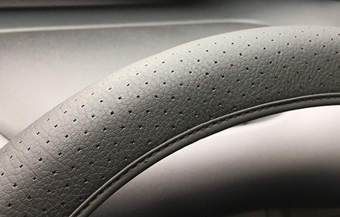 日産セレナ(C27)のハンドルはD型で、径は約37センチでしたのでハンドルカバーのサイズは「S」にしました。色柄は数種類ありましたが、シートカバーに合わせた革調のブラックにしました。