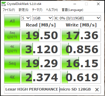 今までのUSB2.0カードリーダーでLexarのTFカードの結果↑