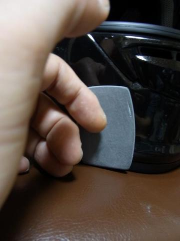 ヘルメット側の希望の場所に押し当てヘルメットの曲面形状にフィットさせます。