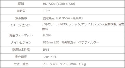 NETGEARのサイトに書かれているカメラスペックは以下の通りです