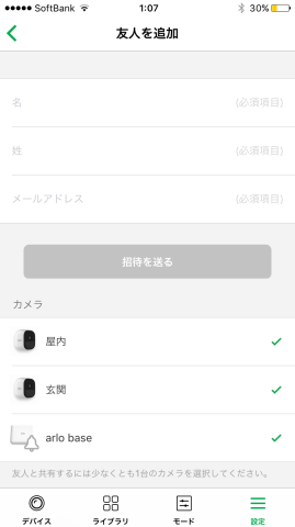 招待する機能では、別のスマートフォンやタブレットでArlo Pro (VMS4230)を操作・閲覧が可能になります。