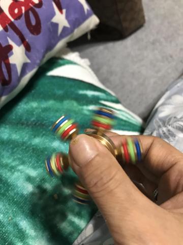 専用の黒いチャック式のケースに入っていて、少しずっしりした感があります。親指と中指か親指と人差し指で持って、空いている指で回すだけ…それを、立てたり横にするとスピードが早くなり結構な長い時間回っている✌️でも、小さな私の手では回すのが精一杯というより不器用なのかしら⁉️主人がすると簡単にできるけれど、調べたら本物と偽物があるらしく、これは本物だという事。偽物は回っている時に立てたり横にしたりしてもスピードは変わらず止まってしまうので、指でまた回して続けないといけないらしい…確かに前に購入したものもそうだった物があった。