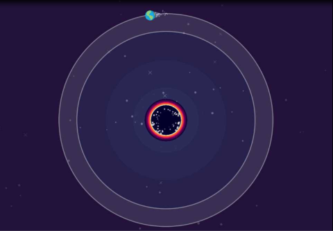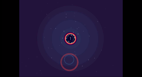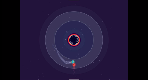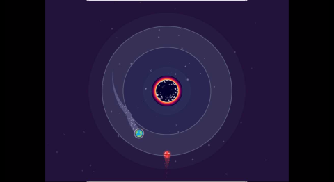 ボタンを押している間だけ、地球がブラックホールから離れた軌道を描いていきます。