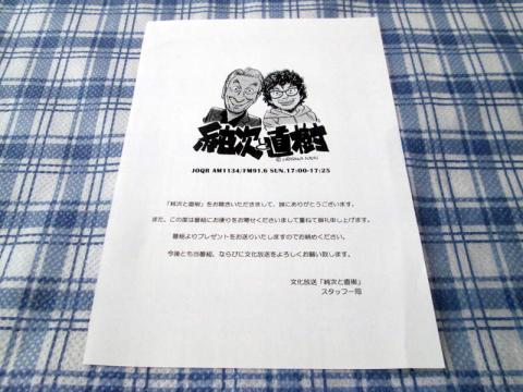 最近、文化放送からはクリアファイルの封筒ばかりなので小さめの封筒は久々だったりします。