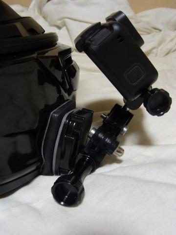 合計5個のマウントアダプターを経由してヘルメットにマウントしてます