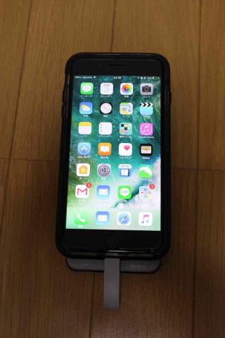大きさは、iPhone6/6s/7と同じです。写真はiPhone7 Plusで、バッテリーの方が一回り小さいです。