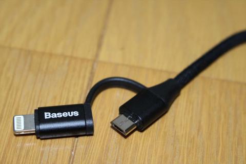 microUSBにアダプタを使って、Lightningケーブルとして使えます。ホルダーも太めなので、すぐに切れるようなことはありません。