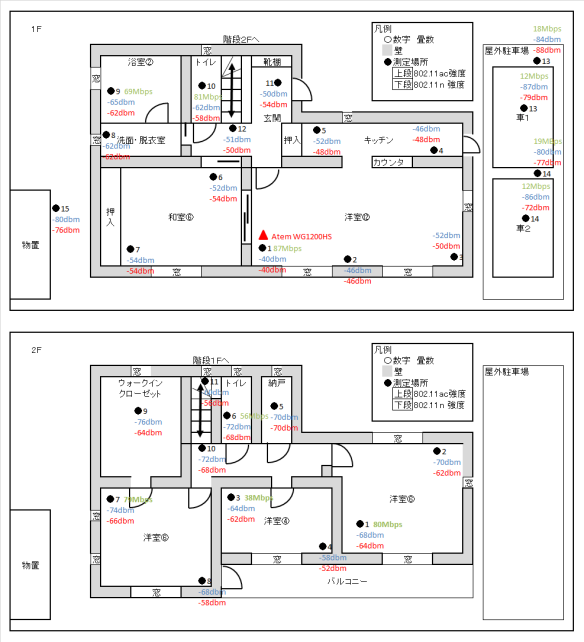 駐車場側2F洋室で部屋の中では通信状態が一番悪いところであえてチェックしました。