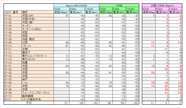 若干ではありますが、Orbiにしたことで、通信速度・電波強度が下がっている部分があります。