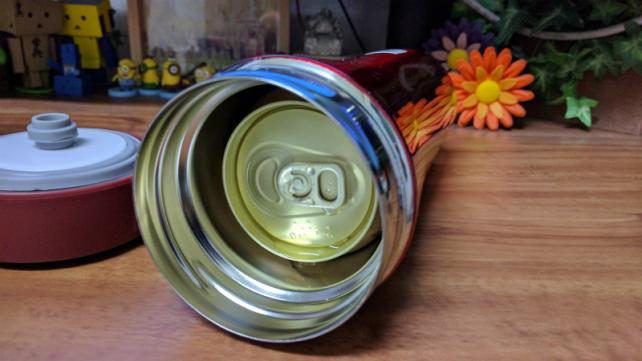 缶をいれるとこんな感じ。蓋をするのですっぽりはいります。