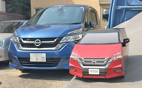 完成品はセレナの特徴をうまく再現しており、印刷だけでなく型押しなどを組み合わせることで完成度を高めています。とはいうものの、基本的にはザックリした作りなので、リアリティを求める人には少しもの足りないかも知れませんね^_^;
