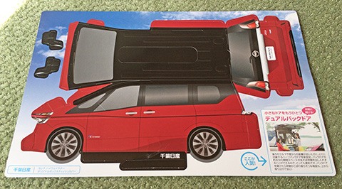 セレナ納車の日にたまたま配布していたもので、色は違うし納車された実写よりもグレードが高いのが気になりましたが、同じセレナということで貰ってきました^_^;