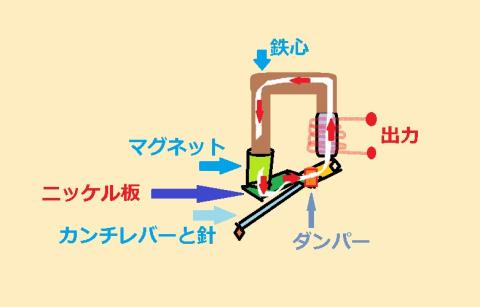 分解すると 針カンチレバー と ダンパーで出来ています カンチレバーの針に近いところはアルミ製で半分以降はニッケルや鉄製のようです これは磁束を通過させる為に必要なのでしょう その分カンチレバーが重くなる訳でアルミ製よりは動作が不利になります トリッキーな原理です