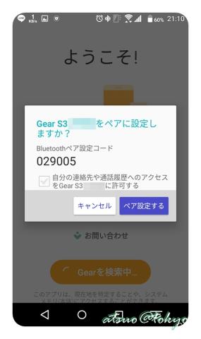 全て許可して進むと、続いて GEAR S3とのペアリング設定になります。
