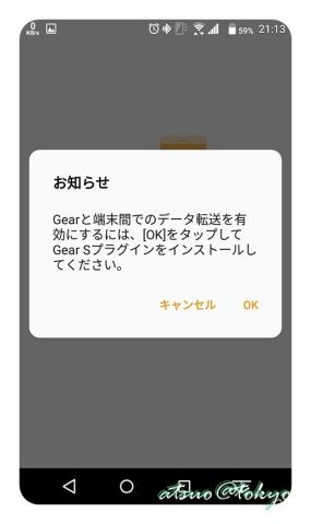 Android画面には「GEAR Sプラグイン」をインストールするように促されます。