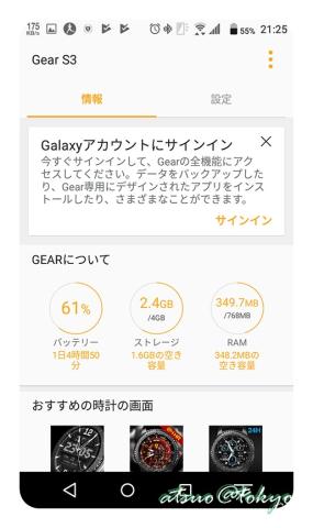 インストールを行なうとサービスが GEAR S3に接続し