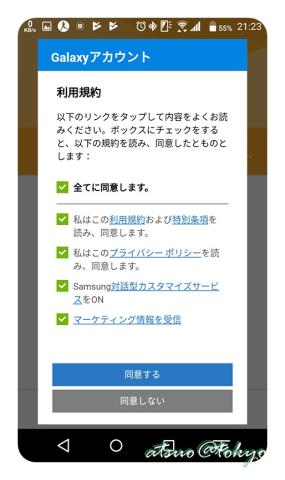 スマホと完全に連携を行なうには、Galaxyアカウントを作成しログインしないといけません。