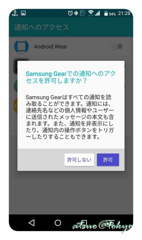 「GEARに接続」をタップすると、Andoroid端末へのアクセス許可を求められます。