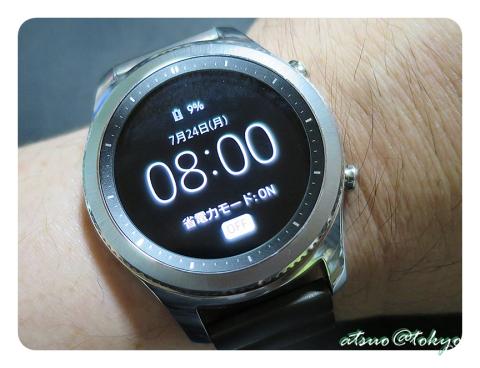 Moto 360と同じ丸い画面ですが、Gear S3は盤面全体が表示出来ますので、アナログ時計デザインにしていると本物のアナログ時計と見間違うほどです。