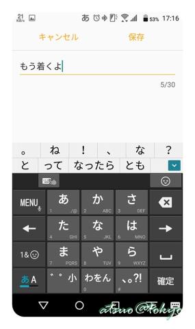 定型句は30文字まで入力可能で、最後に「保存」をタップすると前の画面に戻ります。