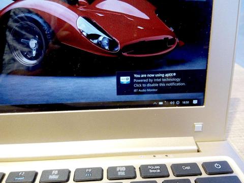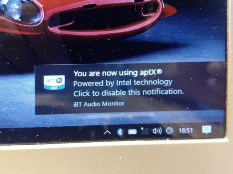 ドライバによってはapt-X接続時に画面左下にapt-Xの大きな通知が表示されます。
