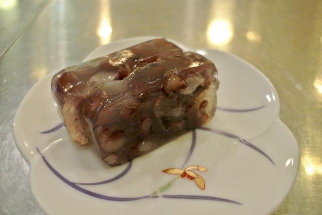 口溶けの良い寒天の中に 大粒最上級の丹波大納言小豆と求肥餅が並びます