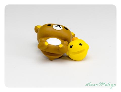 そして今回一番残念だったことが、他のシリーズのモノはコップの縁に載せるにあたって上手くポーズに合わせて乗っていたり引っかかっていたのですが、リッラクマの場合は半分がお尻に溝が切ってある(-_-;)
