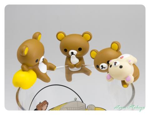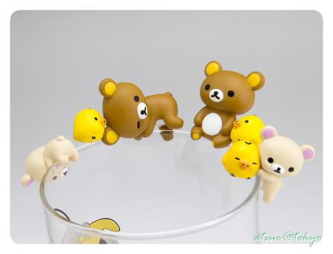 最後に全種類をグラスに乗せようとしたら、さすがリラックマ、だらだらポーズで幅を取り過ぎ乗り切らないので、2回に分けました。