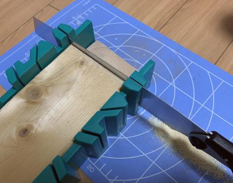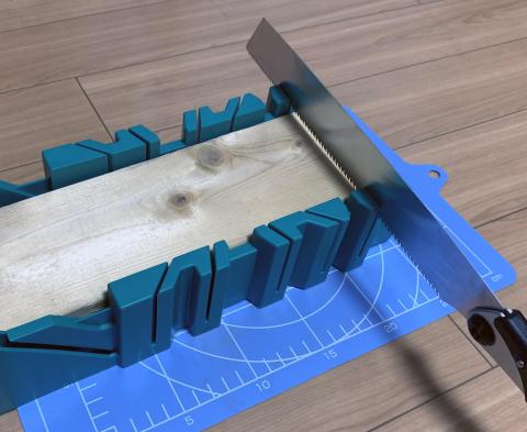 こんな風にノコギリをガイドに沿って入れて切るだけ