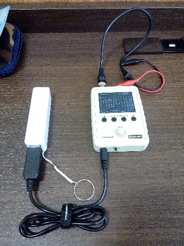 これとモバイルバッテリーを組み合わせると、ACレスのモバイルオシロ環境を構築できます。