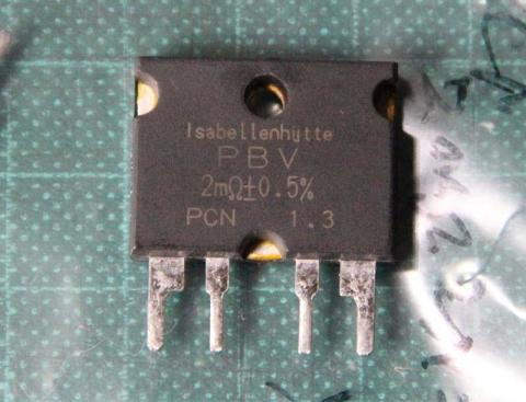 それではと、新しいモジュールで抵抗を同じく汎用タイプの2mΩに換装したところ、ICが破壊する心配はなくなりましたが、やはり精度には不満が残りました。