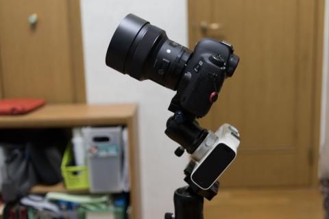 構成は三脚(あえてトラベル三脚)+自由雲台+Polarie+自由雲台+DSLR(14mm)です。